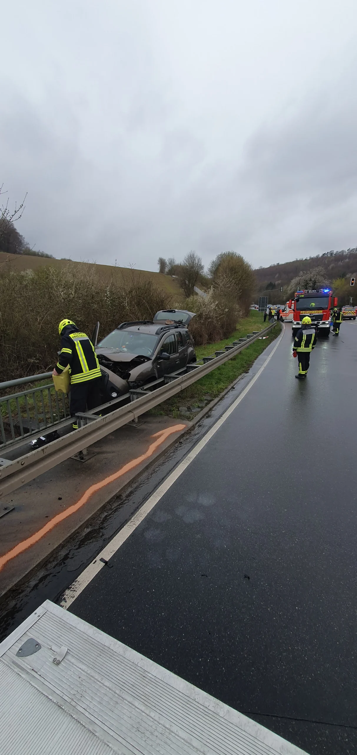 Mit der Seilwinde des HLF 20 wurde das Fahrzeug von der Leitplanke gezogen, um die Batterie abklemmen zu können. Des Weiteren wurden auslaufende Betriebsstoffe abgestreut. Anschließend wurde die Einsatzstelle der Polizei übergeben.