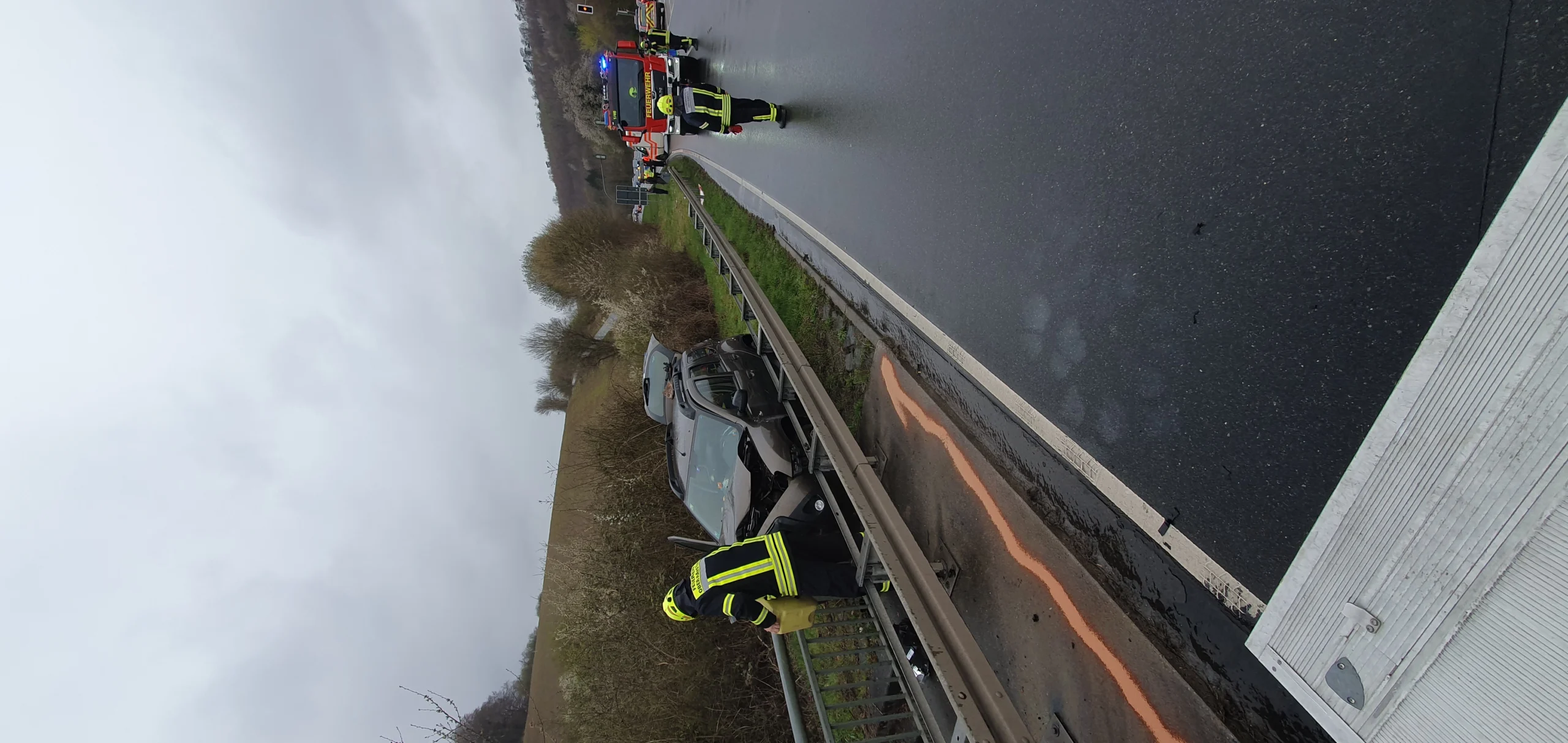 Mit der Seilwinde des HLF 20 wurde das Fahrzeug von der Leitplanke gezogen, um die Batterie abklemmen zu können. Des Weiteren wurden auslaufende Betriebsstoffe abgestreut. Anschließend wurde die Einsatzstelle der Polizei übergeben.