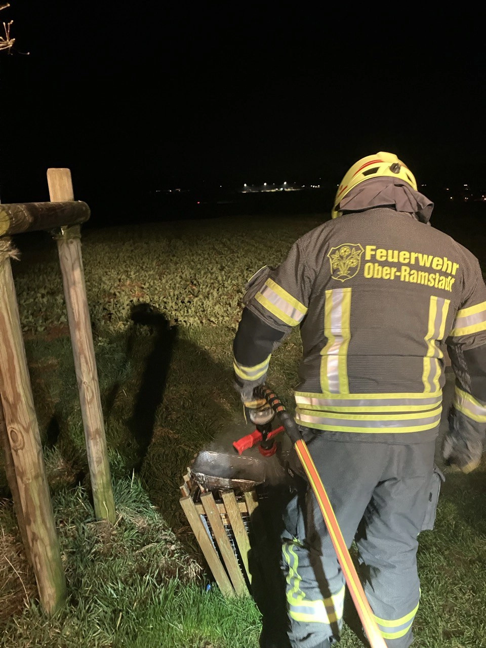 Vor Ort brannte wie gemeldet ein Mülleimer mit Unrat. Dieser konnte schnell mit dem Schnellangriffsschlauch abgelöscht werden.