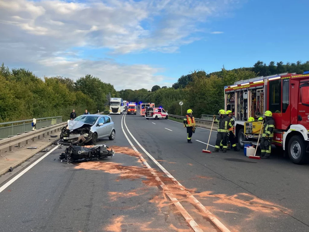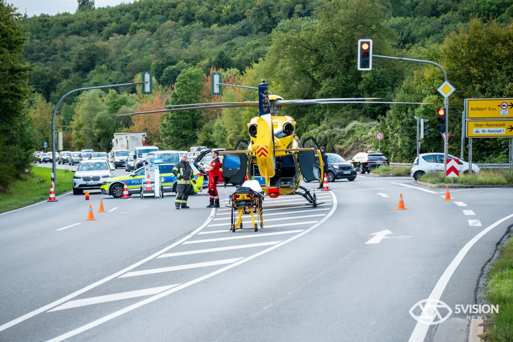 Am Mittwochabend kam es auf der B426 bei Ober-Ramstadt zu einem schweren Verkehrsunfall zwischen einem Motorrad und einem Pkw.