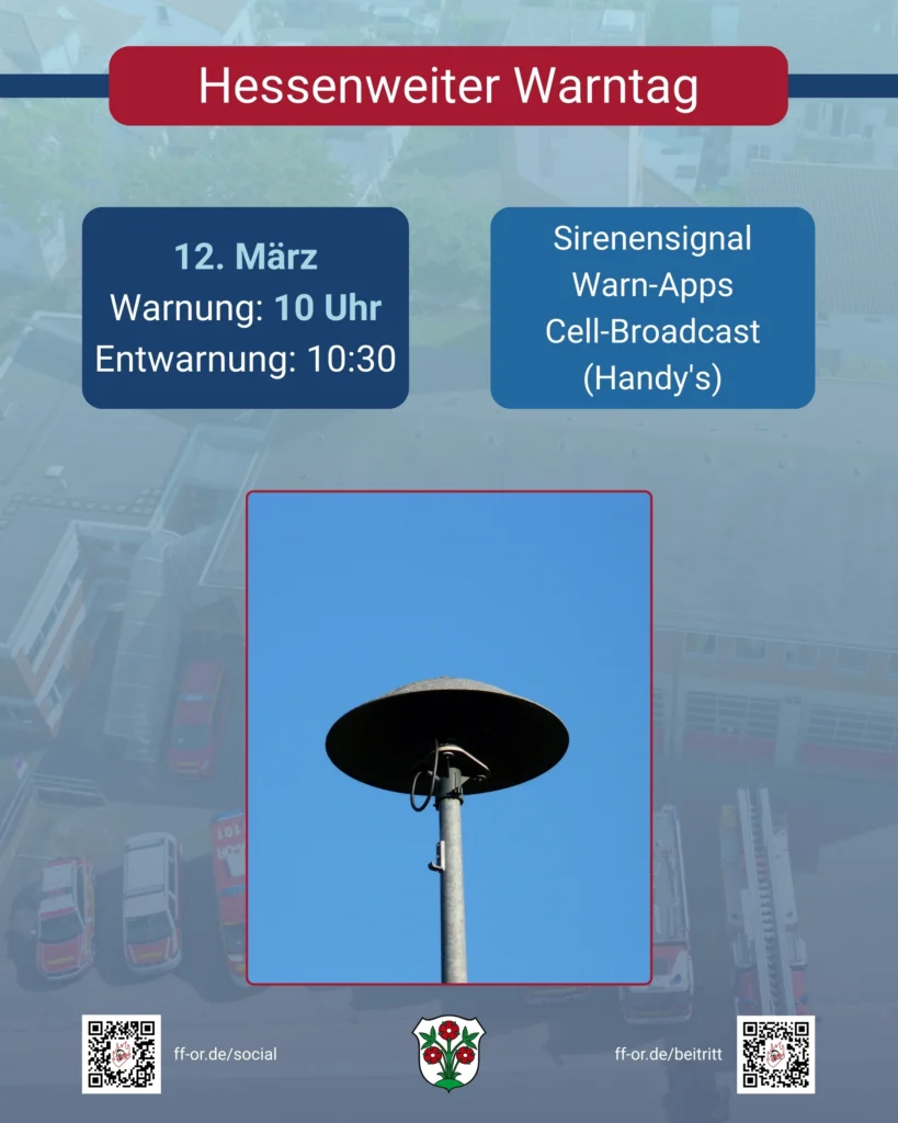 am 12. März findet in Hessen der jährliche Warntag statt. Dieser Test dient dazu, die Funktionstüchtigkeit und Reichweite der Sirenen zu überprüfen, um im Ernstfall eine schnelle und effektive Warnung zu gewährleisten.